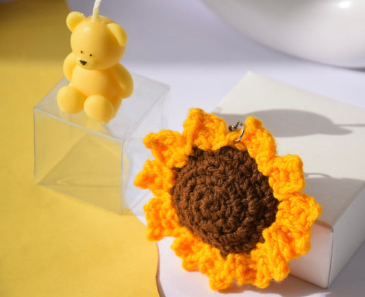 Set of Mini Bear Candle and Sunflower Crochet Keychain